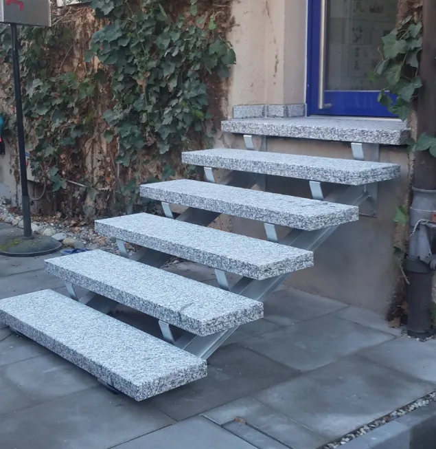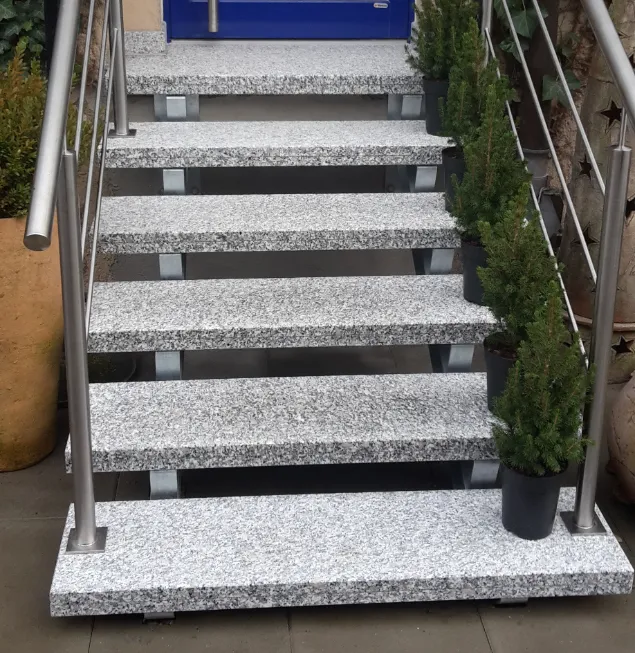 - Verlegen von Naturstein (im Verbund auf Betonstufen oder auf Stahlläufen)