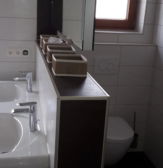 - Fliesenarbeiten an Wand und Boden (z.B. im Bad und WC, Küche, Wohn- und Esszimmer, Flur usw.)